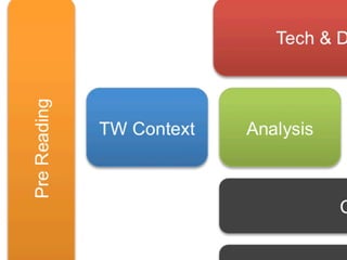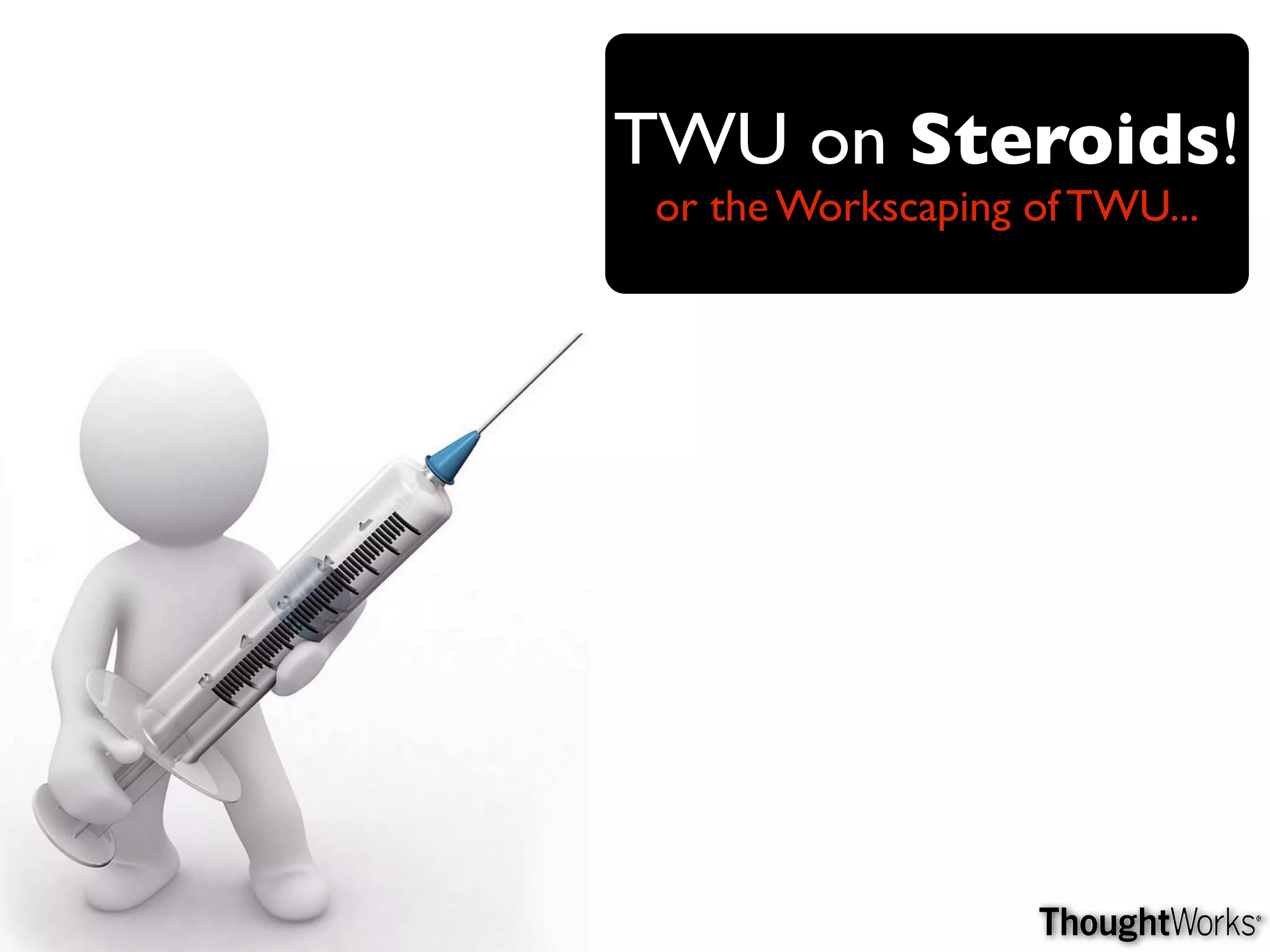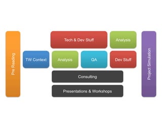 It outlines how the past TWU model involved a teacher teaching and a student learning through lectures and projects. However, surveys showed students learned most from peers, coaching, and real work experiences.