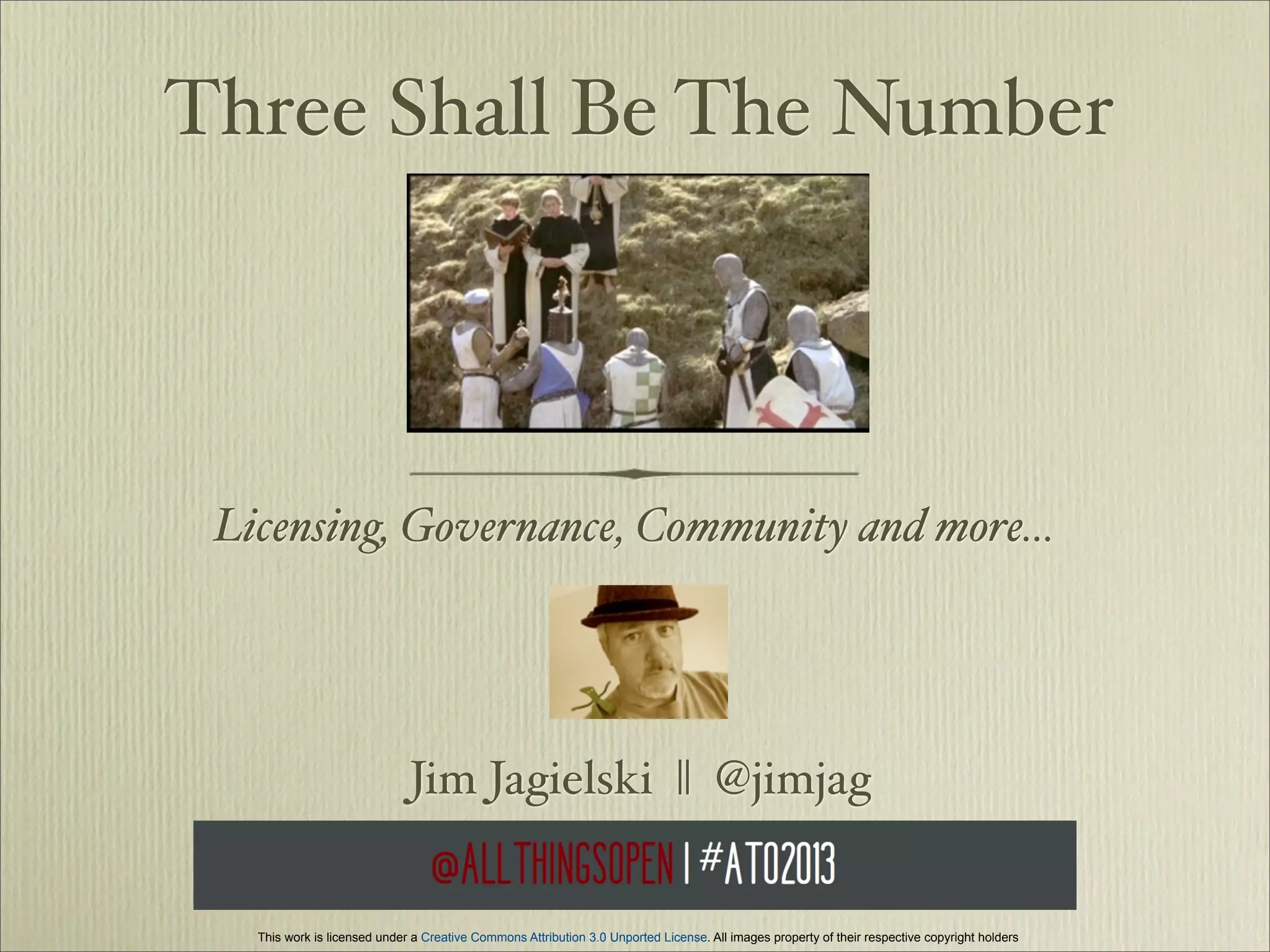 The document discusses open source licensing, governance, and community. It outlines benefits of open source for hackers/developers, companies/organizations, and users. These include impacting development, personal satisfaction, saving resources, and access to source code. The document also covers open source licensing options and how to build an open source community through consensus, meritocracy, and inclusive practices.