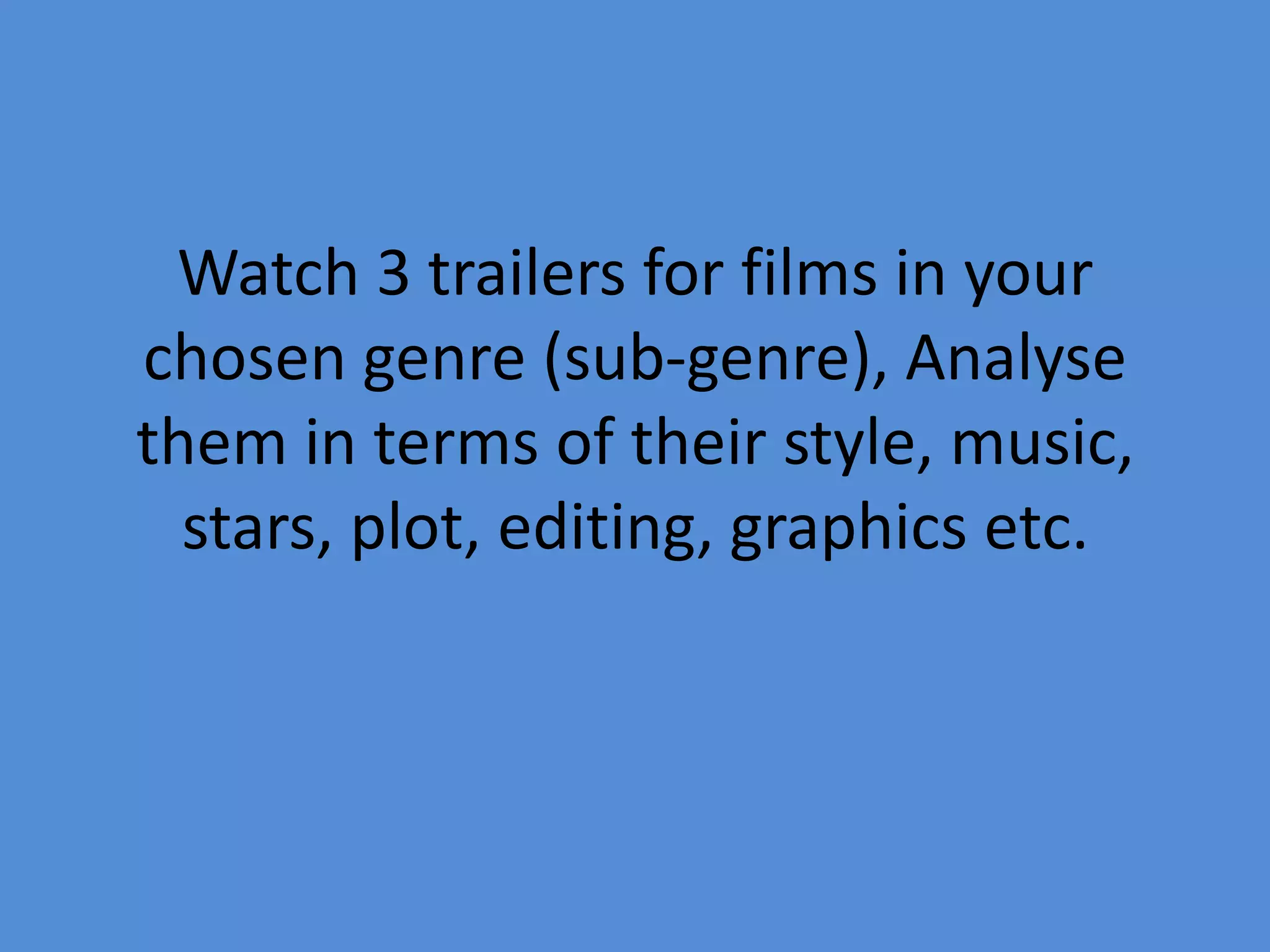 The document analyzes three horror movie trailers in terms of their style, music, and editing techniques. The first trailer for "Orphan" uses dark lighting and fast editing to build intensity. The second trailer for "The Ring" uses ominous music, dull lighting, and unsettling performances to create an eerie atmosphere. The third trailer for "The Grudge" employs quick cuts to black screens and disorienting editing to make viewers feel uncomfortable. Overall, the document concludes that these trailers were effective at using stylistic elements, music, and editing to elicit fear and leave audiences feeling on edge.