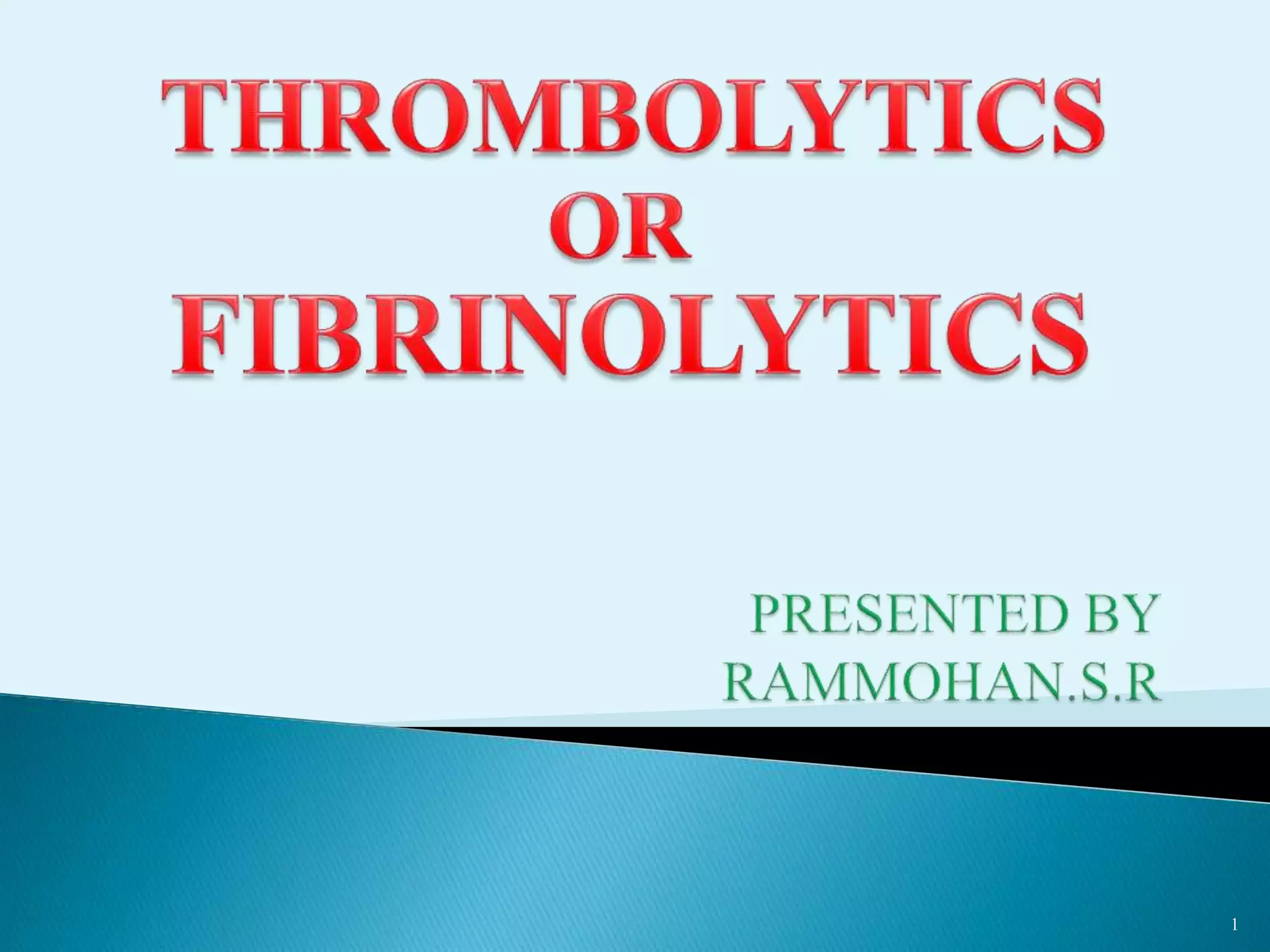 Blood clots can cause serious medical issues if they block arteries or veins. Thrombolytic drugs work by activating plasminogen into plasmin, an enzyme that breaks down fibrin in clots. The three main types of thrombolytic drugs are streptokinase, urokinase, and tissue plasminogen activators (TPA). While all three work to break down clots, TPA is more specific to clots and has fewer side effects than the other drugs. Thrombolytic drugs are used to treat conditions like heart attacks, strokes, and pulmonary embolisms but have risks of bleeding if overused or in the wrong patients.