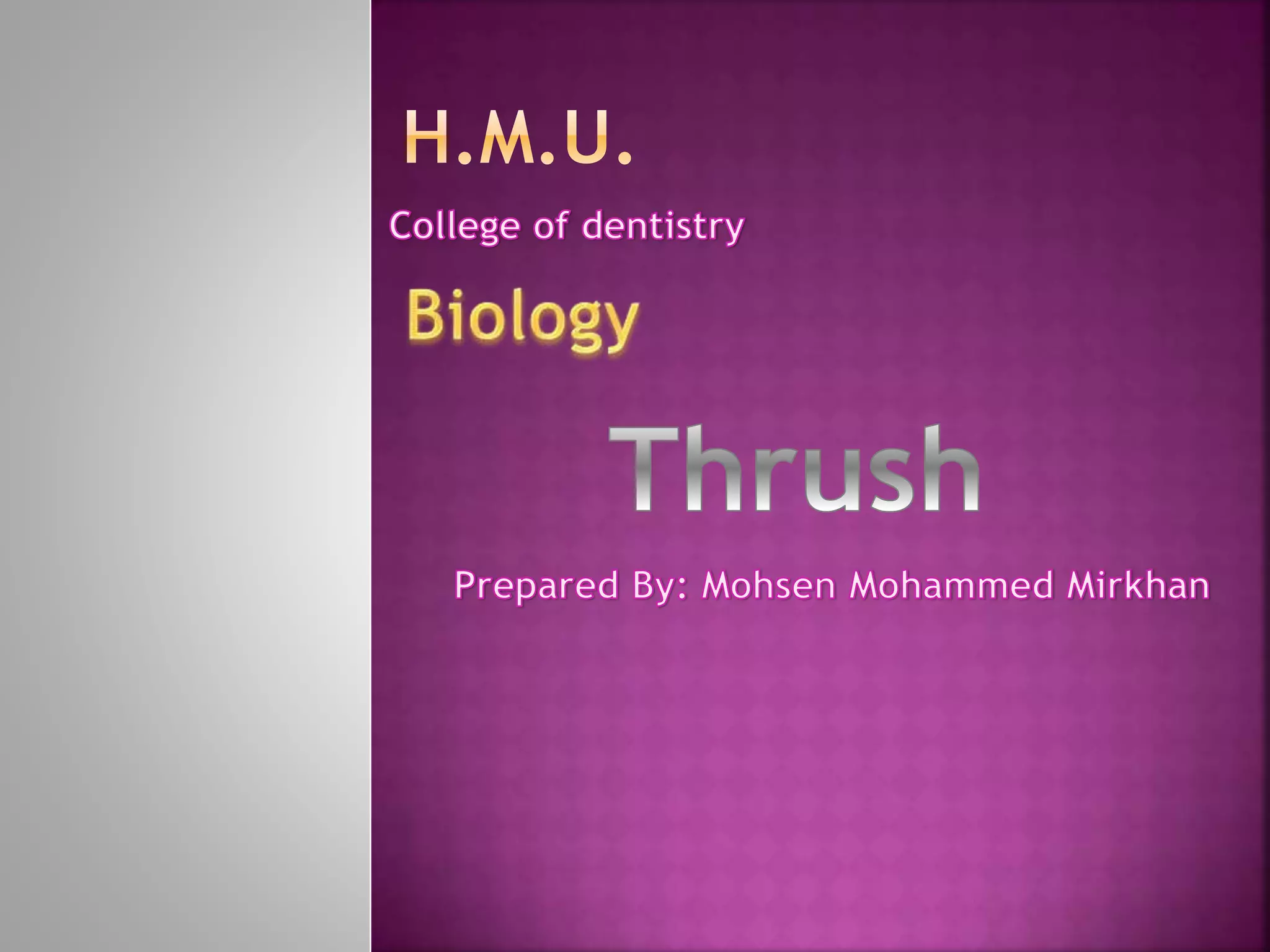 Thrush is a medical condition caused by an overgrowth of the Candida fungus in the mouth and throat. Small amounts of Candida are normally present but are kept in balance by the immune system and bacteria. However, illnesses, medications, stress, or other factors can disrupt this balance and cause Candida to grow excessively, resulting in thrush. Symptoms include white patches in the mouth and throat, soreness, and strange tastes. Thrush is diagnosed visually or microscopically and treated with antifungal medications, by addressing its underlying cause, or using home remedies to reduce discomfort.