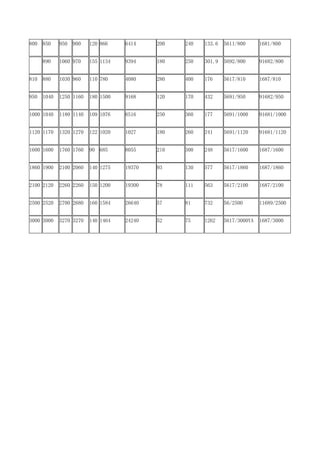900 120 866 6414 200 240 133.6 5611/800 1681/800 890 1060 970 155 1134 9394 180 250 301.9 5692/800 91682/800 810 880 1030 960 110 780 4080 280 400 176 5617/8l0 1687/810 950 1040 1250 1160 180 1500 9168 120 170 432 5691/950 91682/950 1000 1040 1180 1140 109 1076 6516 250 360 177 5691/1000 91681/1000 1120 1170 1320 1270 122 1020 1027 180 260 241 5691/1120 91681/1120 1600 1600 1760 1760 90 685 8055 2l0 300 248 5617/1600 1687/1600 1860 1900 2100 2060 140 1275 19370 93 130 577 5617/1860 1687/1860 2100 2120 2260 2260 150 1200 19300 78 111 563 5617/2100 1687/2100 2500 2520 2700 2680 160 1584 26640 57 81 732 56/2500 11689/2500 3000 3000 3270 3270 140 1464 24240 52 75 1262 5617/3000YA 1687/3000