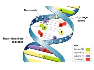 DNA stores genetic instructions in the form of a code made up of four nitrogenous bases: adenine (A), thymine (T), guanine (G), and cytosine (C). DNA has a double-stranded helical structure, with the strands bonded together via complementary base pairing between A and T and between G and C. According to Chargaff's rule, the percentage of A bases is always equal to the percentage of T bases, and the percentage of G bases is always equal to the percentage of C bases within a DNA sample. The two strands of DNA run in opposite directions of each other (anti-parallel) and form a double helix.