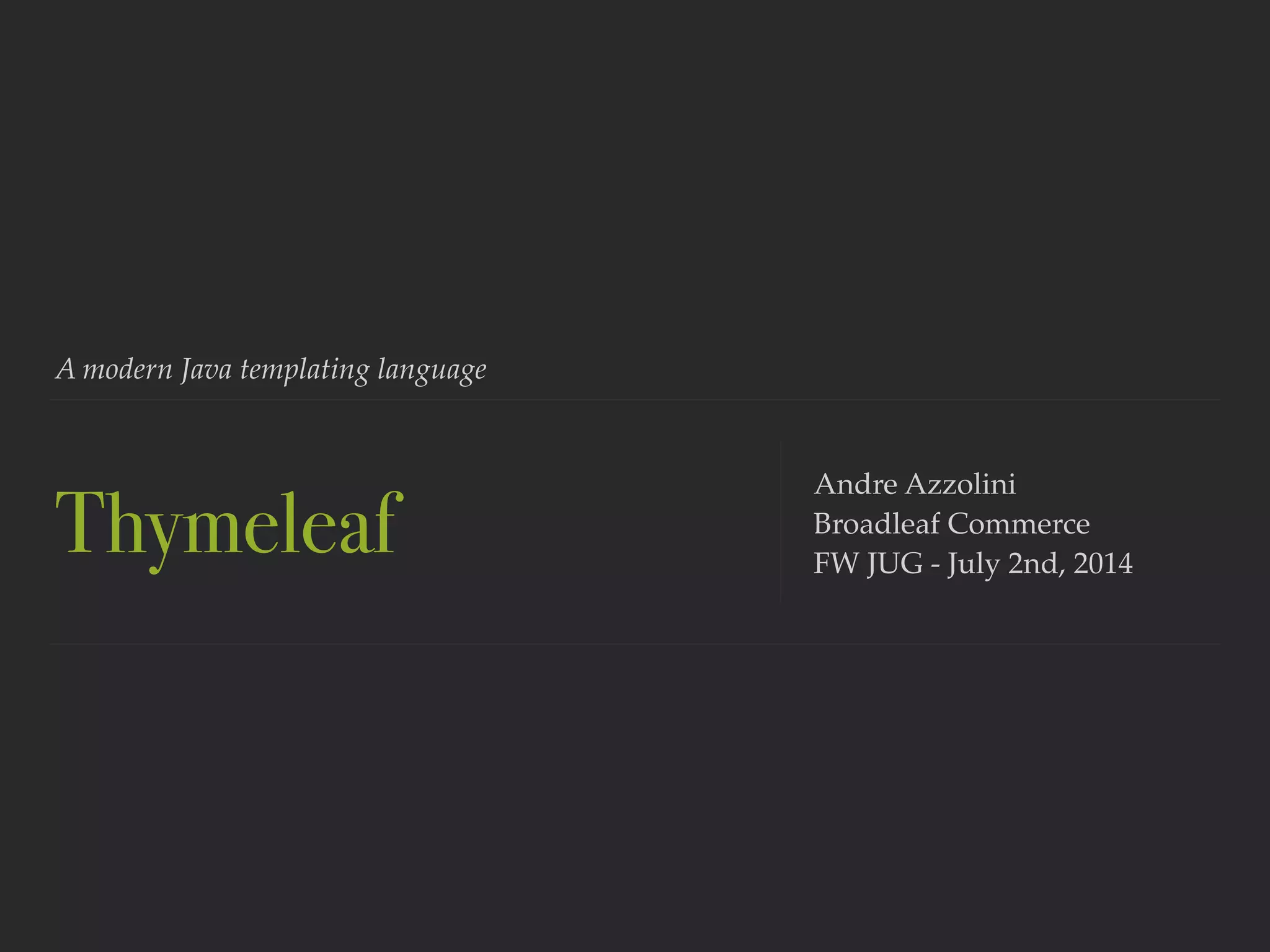The document discusses Thymeleaf, a modern Java templating language used in the Broadleaf Commerce eCommerce framework, focusing on its key features like extensibility, natural templating, and modular architecture. It provides examples and insights into installation, usage, custom processors, internationalization, and form bindings within a Spring application. Additionally, it highlights existing integrations, advanced caching strategies, and dynamic template management for a seamless development experience.