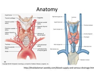 1. The anatomy, vascular supply, histology, and hormone synthesis of the thyroid gland.