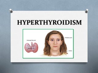 Hyperthyroidism and hypothyroidism can complicate pregnancy and cause issues for both the mother and fetus. Hyperthyroidism occurs in 2 per 1000 pregnancies and can lead to miscarriage, preterm delivery, preeclampsia, and cardiac failure in the mother as well as intrauterine growth restriction and premature birth in the fetus. It is caused by thyroid stimulating antibodies crossing the placenta and producing neonatal hyperthyroidism. Hypothyroidism can cause complications like preeclampsia and anemia if untreated. Treatment involves monitoring thyroid levels and adjusting medication doses as thyroid needs increase in pregnancy.