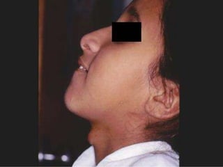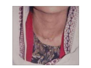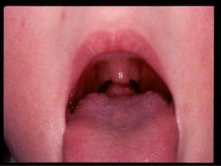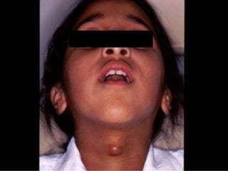 1. Lingual thyroid is a rare condition where the thyroid gland is located at the base of the tongue instead of the normal location in the neck. Investigations like thyroid scan and CT neck can help locate the gland. Treatment involves medical therapy initially and surgery if medical treatment fails.