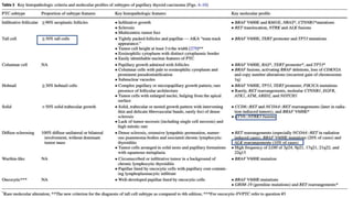 2. Key driver mutations in different thyroid tumors including BRAF, RAS, RET, NTRK, and others.