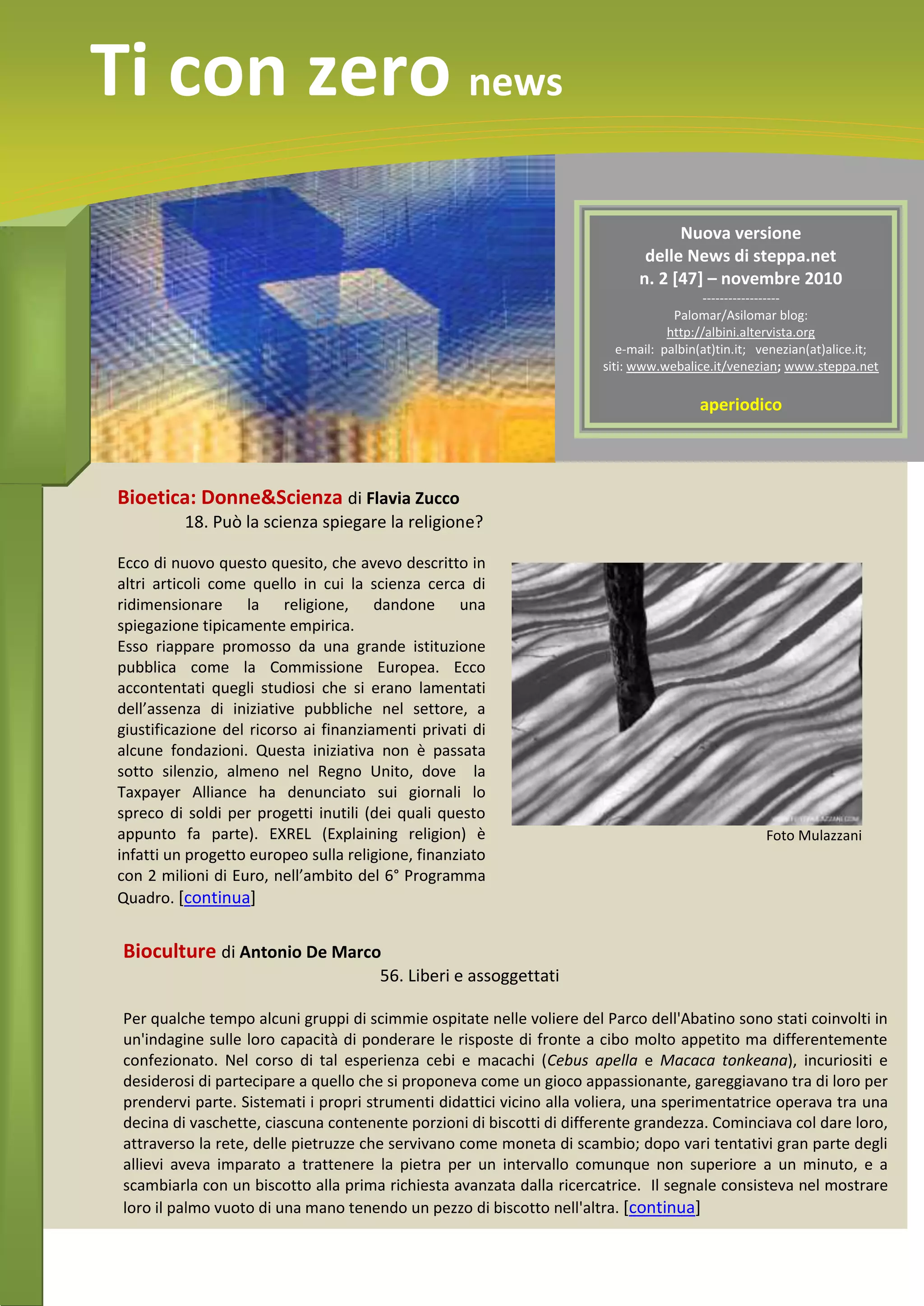 Il documento discute l'interazione tra scienza e religione, evidenziando un progetto europeo di 2 milioni di euro focalizzato sulla spiegazione scientifica della religione. Inoltre, esplora esperimenti con primati riguardanti il loro comportamento e capacità cognitive. Infine, critica il panorama informativo attuale, che si concentra su eventi sensazionalistici invece che su contenuti di maggiore rilevanza.