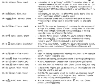 Lwan0179>luan3 卵 =egg; the roe of fishes; testicles. cf 0178L 'round; spheric...