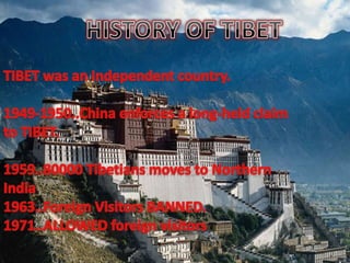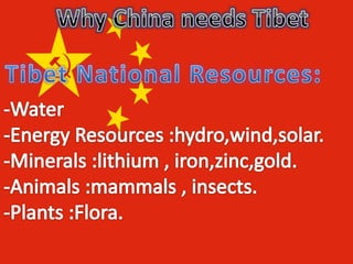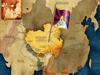 The Gyamari River document discusses the environmental and human rights issues facing Tibetans. It notes that over 1 million Tibetans have been killed or tortured by China, thousands of monasteries destroyed, large-scale deforestation is causing soil erosion, and political prisoners face abuse and torture in Chinese camps. Nuclear weapons testing has also occurred on the Tibetan plateau.