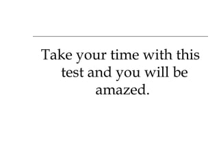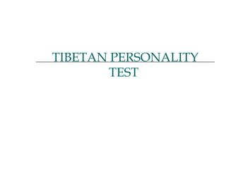This document presents a 4 question personality test based on Tibetan beliefs. Participants are asked to rank 5 animals, describe 5 words, name people associated with colors, and provide a favorite number and day. The interpretations claim the answers reveal one's priorities, personality, important relationships, and that sending the message to the number of one's favorite number will improve their life.