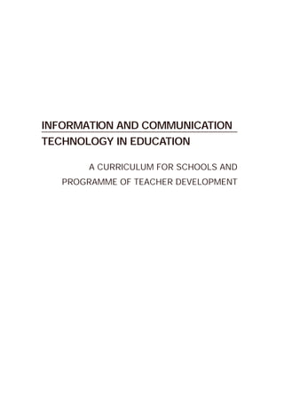 This document presents a curriculum for information and communication technology (ICT) education in secondary schools and a programme for teacher development. It aims to ensure all countries have access to quality education to prepare students for modern society.
