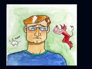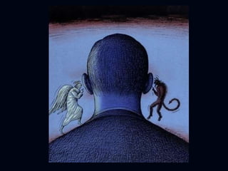 Veiem la representacióde dues “veus” que ens parlen : la veu d’ allò que és correcte i la d’ allò que no ho és. Al mig la nostra capacitat de decidir. És la que ens farà responsables del que fem.