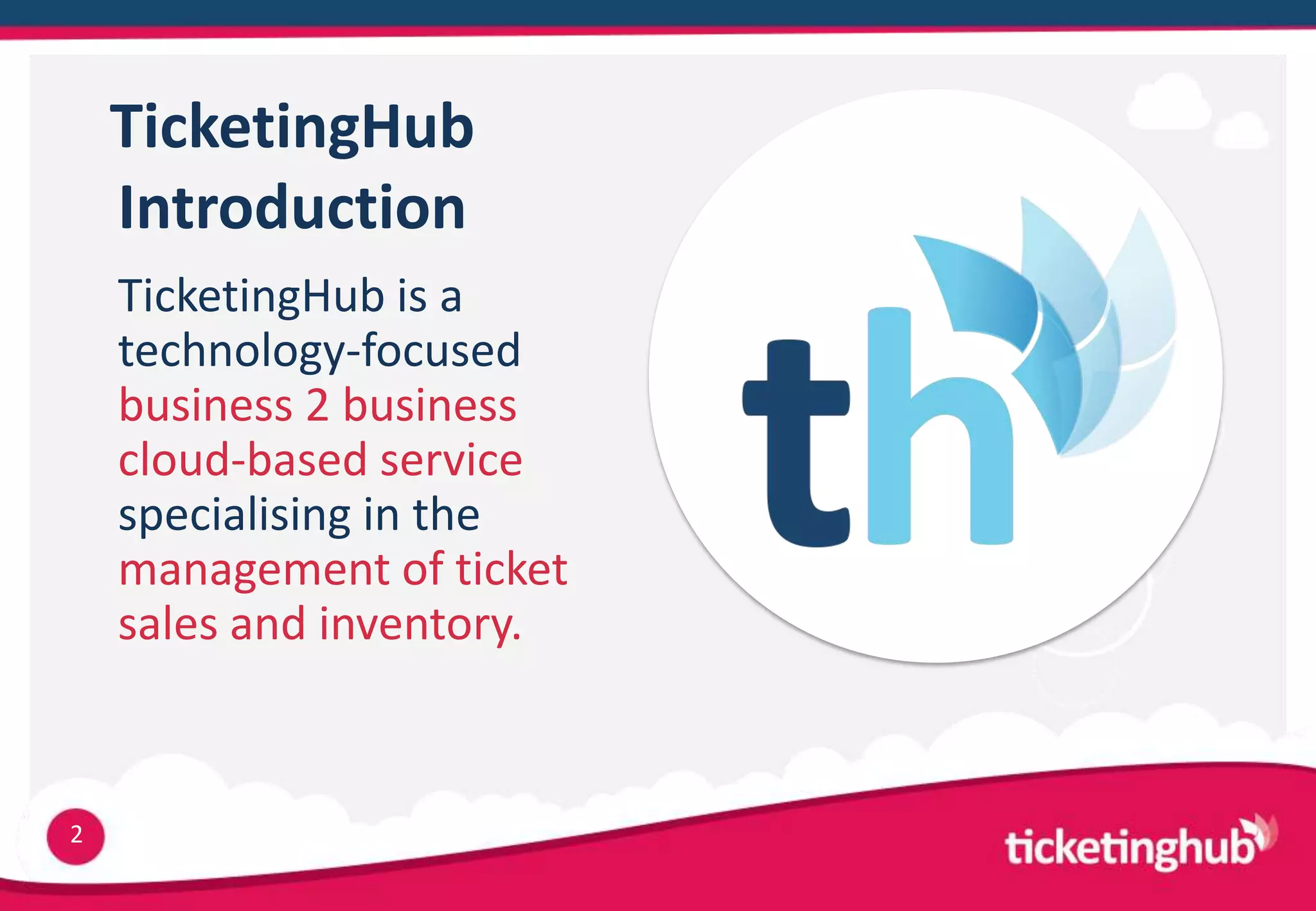 TicketingHub is a cloud-based service that specializes in ticket sales and inventory management, offering a transparent pricing model with no setup fees and a flat commission of 50p per ticket. It provides features such as inventory management, live analytics, and fraud protection, positioning itself favorably against competitors by offering lower administration and supply chain costs. A case study highlights a tour company running efficiently with TicketingHub, showcasing its effective management capabilities.