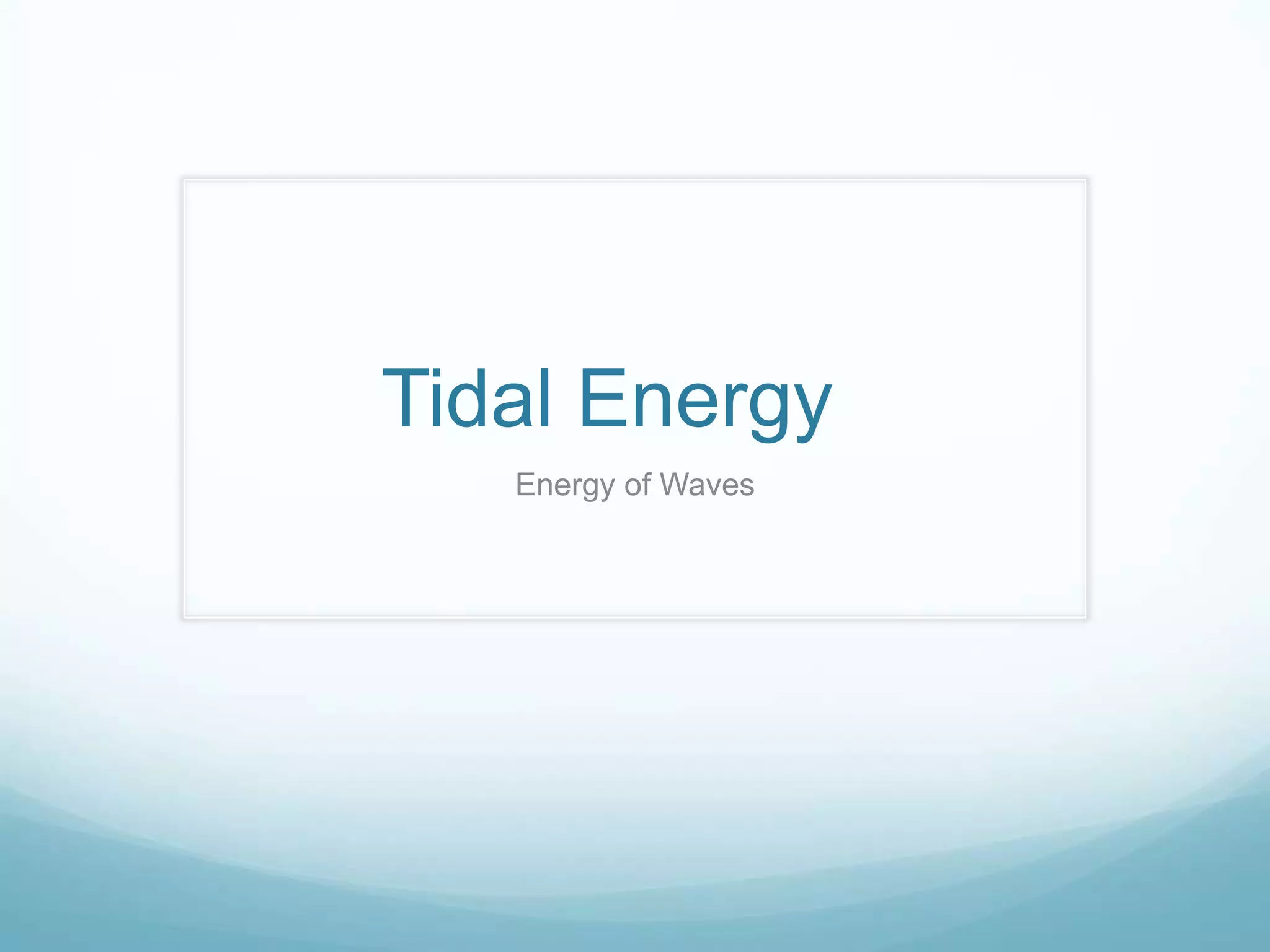 Tidal energy harnesses the power of ocean tides by using underwater turbines that are turned by the flow of water to generate electricity. The turbines spin faster as the tide increases in speed, converting the kinetic energy of the tides into electrical energy that can be supplied to homes and businesses. While tidal energy has benefits such as being renewable and producing consistent energy without pollution, it also has challenges including high upfront costs, potential environmental impacts, and lower energy outputs compared to other sources.