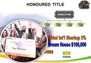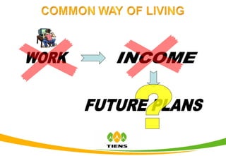 The document outlines a global personal franchise opportunity focused on network marketing, highlighting the financial and health benefits of joining the business. It discusses various health products developed by Tiens International, emphasizing their natural ingredients and advantages for personal health, alongside a detailed marketing plan for potential investors. Additionally, it covers health factors and the importance of specific nutrients for maintaining well-being.