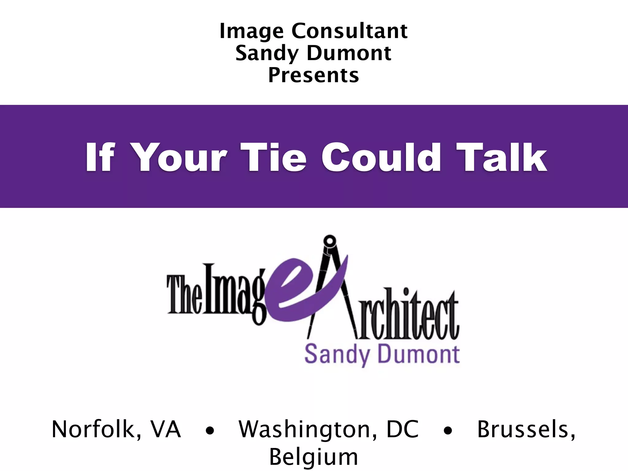 Sandy Dumont, an image consultant, explores the impact of clothing, particularly ties and attire, on perceptions of power and authority in her presentation, 'If Your Tie Could Talk.' The document includes various quizzes to assess one's image quotient, highlighting how colors, styles, and grooming can influence professional credibility. Dumont emphasizes the importance of appropriate fashion choices in conveying leadership and authority in different settings.