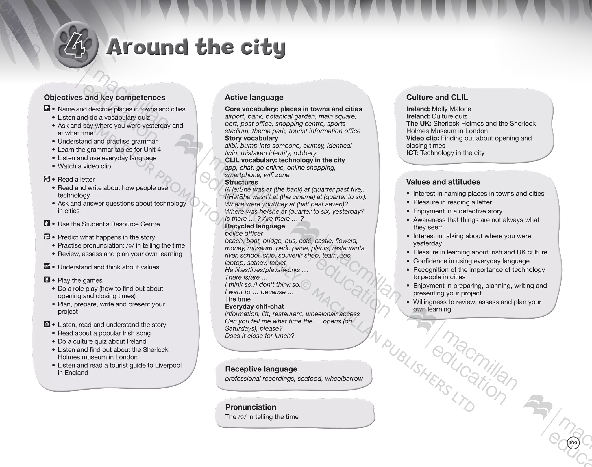 This document provides information about a lesson on places in towns and cities. It includes vocabulary like airport, bank, botanical garden, and activities for the lesson from the student's book and activity book. The student's book activities include listening to a letter from a girl in Dublin, correcting sentences about what she says, and talking about why they would like to visit Dublin. The activity book reinforces vocabulary with a crossword and matching exercise and questions about the content of the letter. The lesson aims to practice describing places in towns and discuss cities and culture in Ireland.
