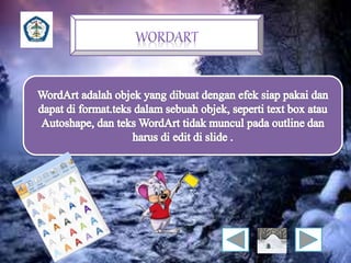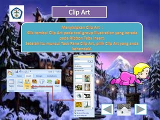 · Media Clips, untuk memperkaya tampilan slide Anda, maka anda dapat