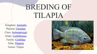 Tilapia are freshwater fish from Africa known for their parental care and efficient growth, making them a popular choice in aquaculture. They can breed year-round in various aquatic environments, and their high demand stems from their quick growth and lack of intramuscular bones. Successful tilapia farming involves selecting appropriate broodstock, employing artificial breeding methods, and carefully rearing the fry to ensure optimal growth.