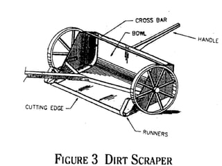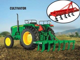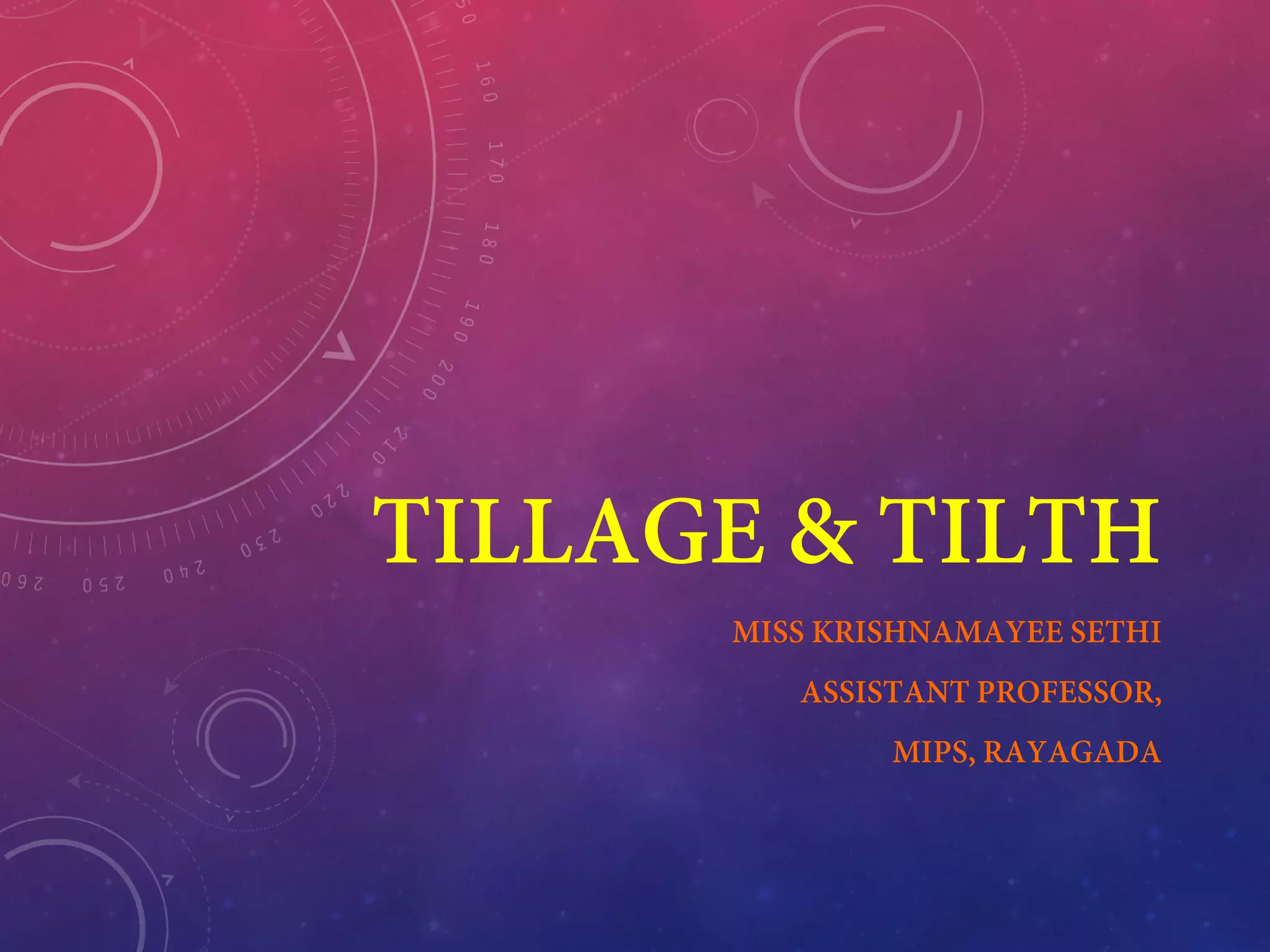 Tillage and tilth involve mechanical soil manipulation to create ideal conditions for plant growth. Tillage includes primary tillage like ploughing to open soil and secondary tillage like harrowing to break clods. The objectives are to prepare seedbeds, control weeds, aerate soil, and mix amendments. On-season tillage occurs before planting while off-season tillage conditions soil for future crops. Different tillage types include subsoiling to break hardpans and puddling for rice where soil is tilled under water. The depth and number of tillage operations varies by crop needs and soil conditions.