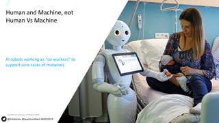 The document discusses the integration of AI in chronic disease management, showcasing the role of AI in personalizing healthcare and supporting patients through technology. It emphasizes the need for effective design and collaboration between human and machine interactions to enhance patient care and optimize health outcomes. Additionally, it outlines challenges in implementing AI, including trust, interpretability, and the necessity for multidisciplinary teams to navigate the complexities of healthcare landscapes.