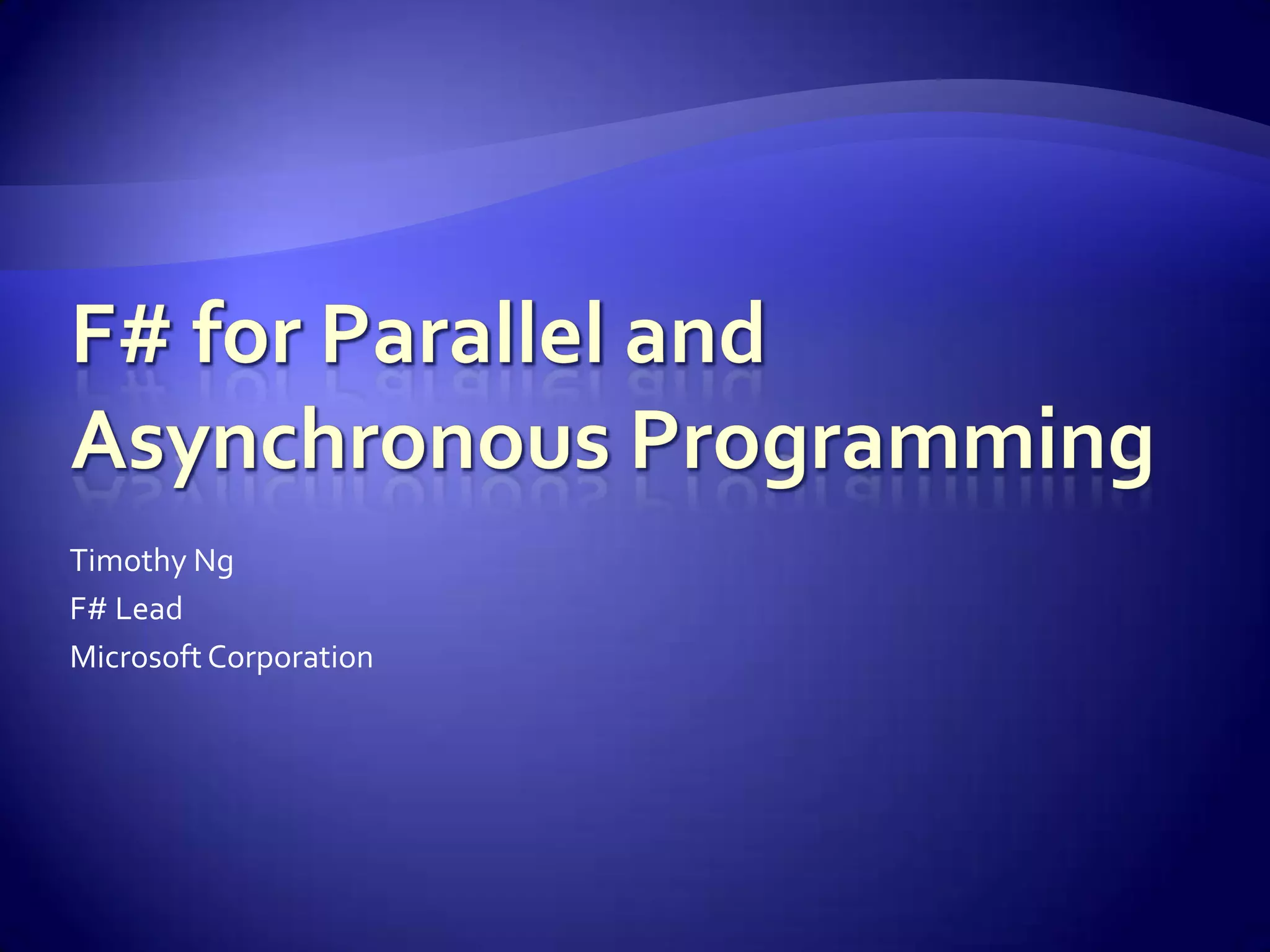Timothy Ng is the F# Lead at Microsoft Corporation. The document summarizes F#'s approach to parallelism and concurrency through tools like Visual F#, libraries like Parallel LINQ and Rx, and language features in F# like immutability and asynchronous workflows. It discusses challenges of shared state, code locality, I/O parallelism, and scaling to multiple machines that F# addresses through techniques like immutability, asynchronous workflows using async {...}, and agent-based programming. The summary concludes that F# with .NET 4.0 makes parallelism and asynchrony simple, powerful, and productive for both current and future use.