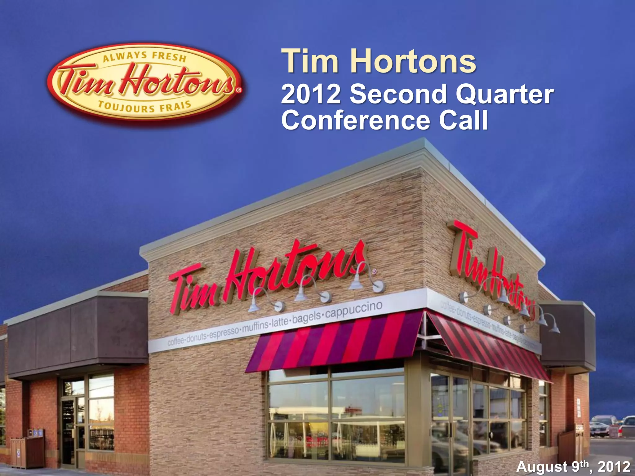 This document provides a summary of Tim Hortons' 2012 second quarter conference call. It includes: