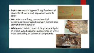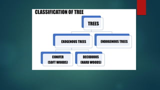 This document discusses different types of timber used in civil engineering projects in Nepal. It provides details on the characteristics of good timber, commonly used types of timber in Nepal and their uses. It also discusses different methods of seasoning timber, including air, water, kiln and chemical seasoning. The objectives and processes involved in each seasoning method are explained. Finally, the document outlines various treatment methods for timber, including using copper, chemical salts, coal tar, oil paints and acetic anhydride to increase durability and protect timber from fungi, insects and decay.