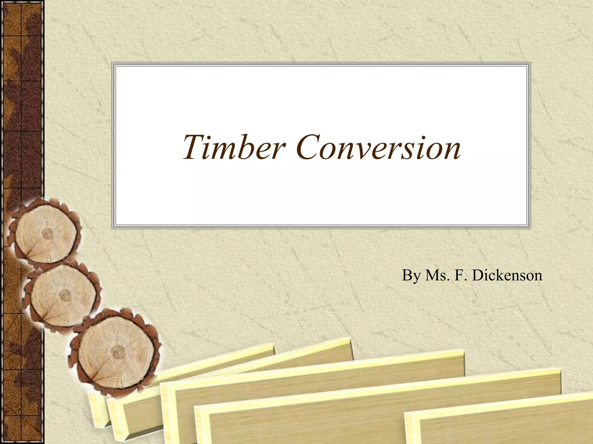 Timber conversion involves turning felled trees into usable lumber through sawing. There are two main conversion methods: plain sawing, which is fastest but produces wood more prone to warping; and quarter sawing, which shows the grain beautifully but is more complex and wasteful. Proper conversion allows wood to be dried, shaped, and graded for its quality before being sold as lumber.