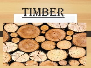 Timber is a form of wood categorized into endogenous and exogenous trees, with exogenous trees being more commonly used in construction. They are divided into softwood from conifers and hardwood from deciduous trees, each with distinct characteristics. Seasoning timber is essential to remove moisture and prevent decay, and it is utilized in various applications including construction, furniture, and agricultural tools.