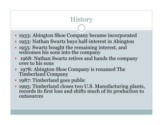 Timberland experienced its first major financial loss in 1995 when it closed two U.S. manufacturing plants and laid off 540 employees. This damaged relationships with employees and shareholders. To rebuild trust, Timberland pledged $5 million to City Year and increased community service efforts. However, Timberland failed to clearly communicate the importance of these initiatives to key stakeholders. It implemented strategies like media campaigns and internal communications but did not thoroughly explain how community involvement would benefit the company's future. Timberland needed to transparently convey the value of service to rebuild relationships with employees, shareholders and the public.