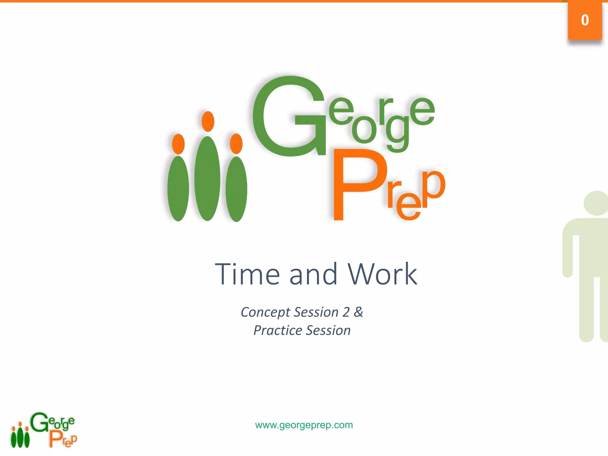 This document contains content from www.georgeprep.com related to time and work problems, including concepts, practice problems, and solutions. It includes examples of time and work word problems involving pipes filling tanks, groups of workers completing tasks, and wage distributions. It also provides the solutions to sample time and work practice problems involving variables such as time taken, efficiency, and monetary shares.