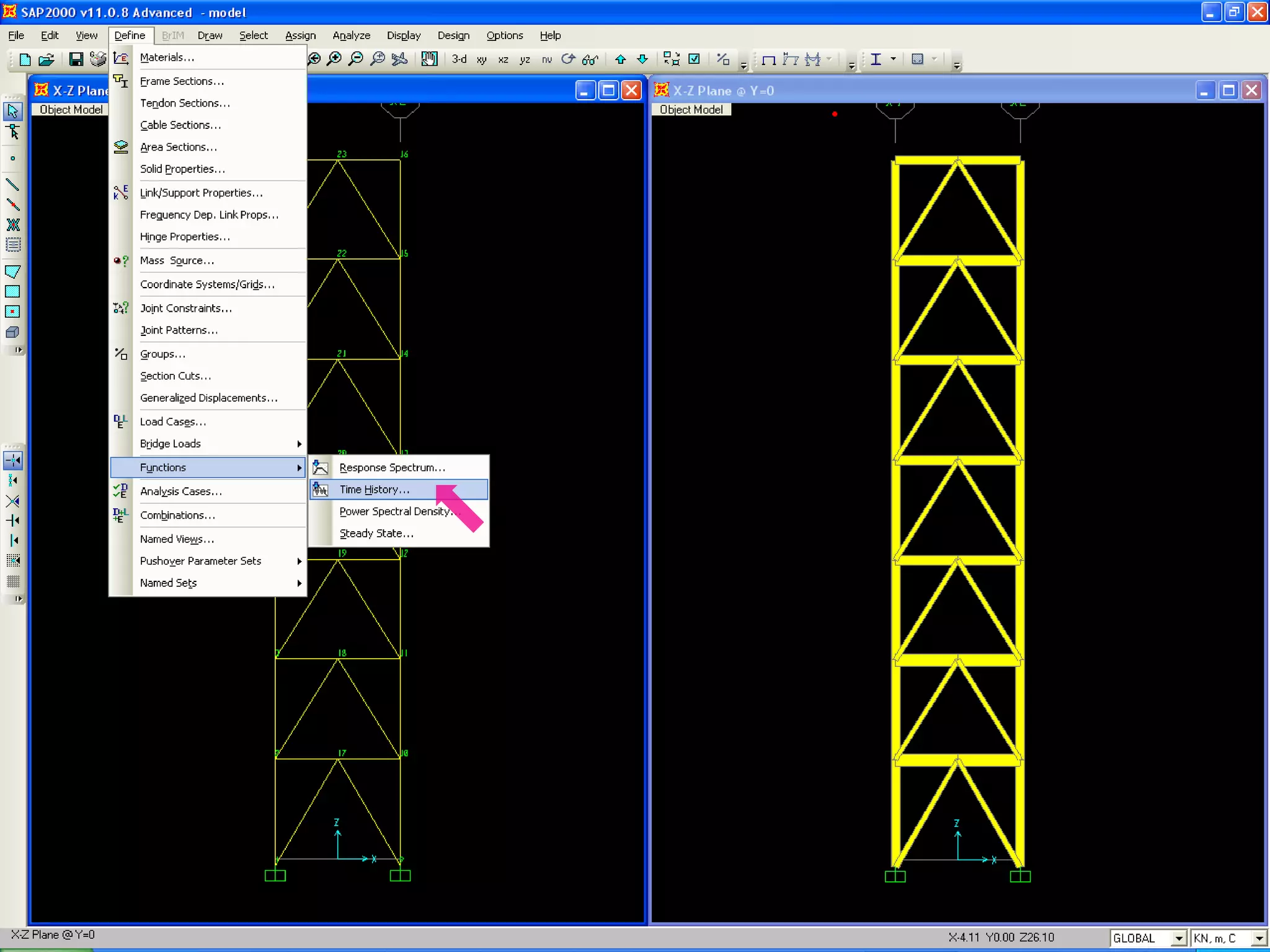 3) Assign the accelerogram to a time history analysis case and run the dynamic analysis.