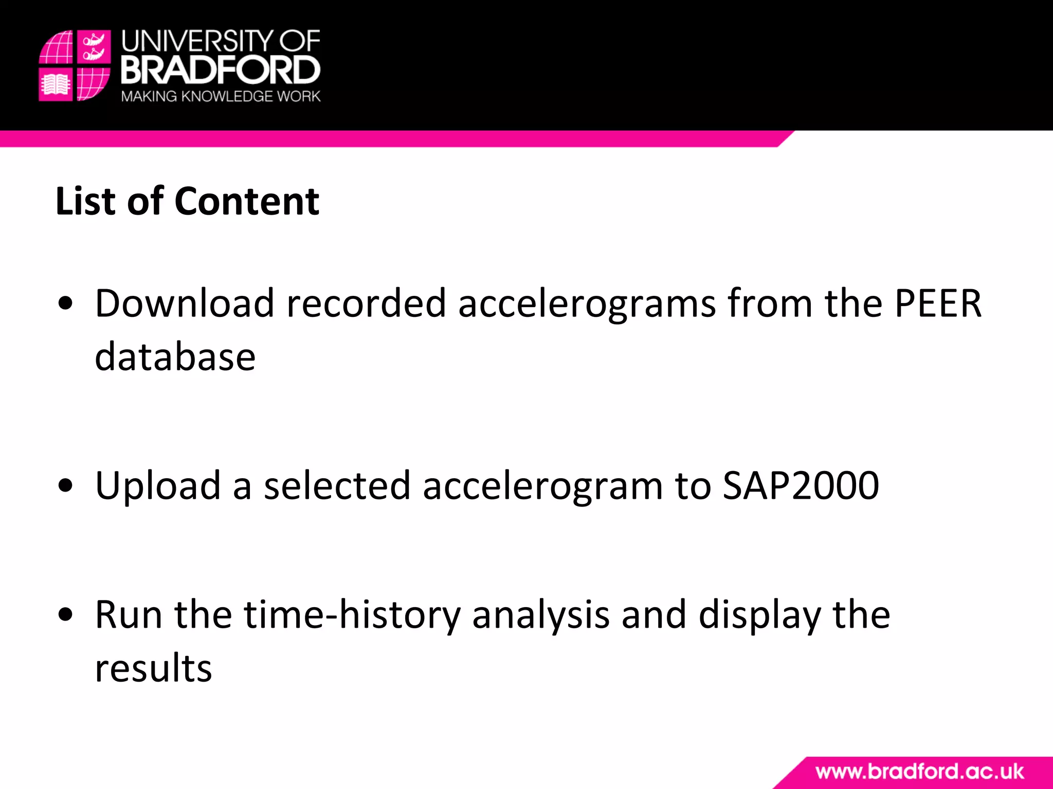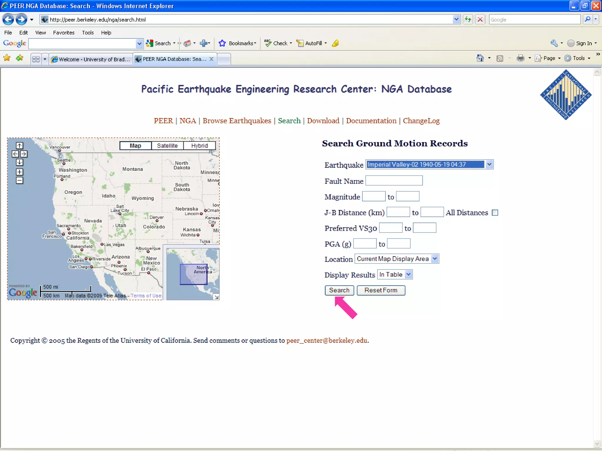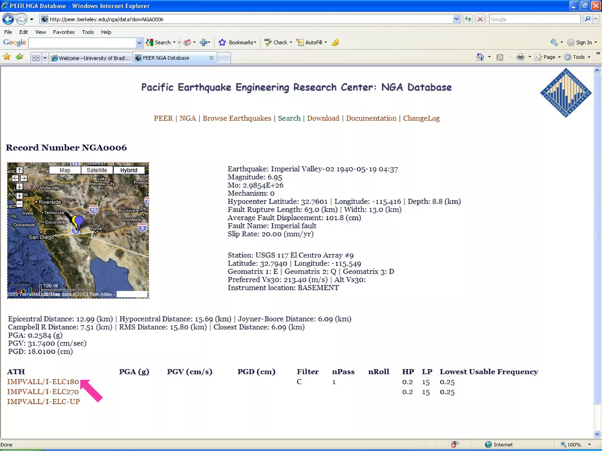 1) Download recorded earthquake accelerograms from the PEER database, such as one from the 1940 Imperial Valley earthquake.