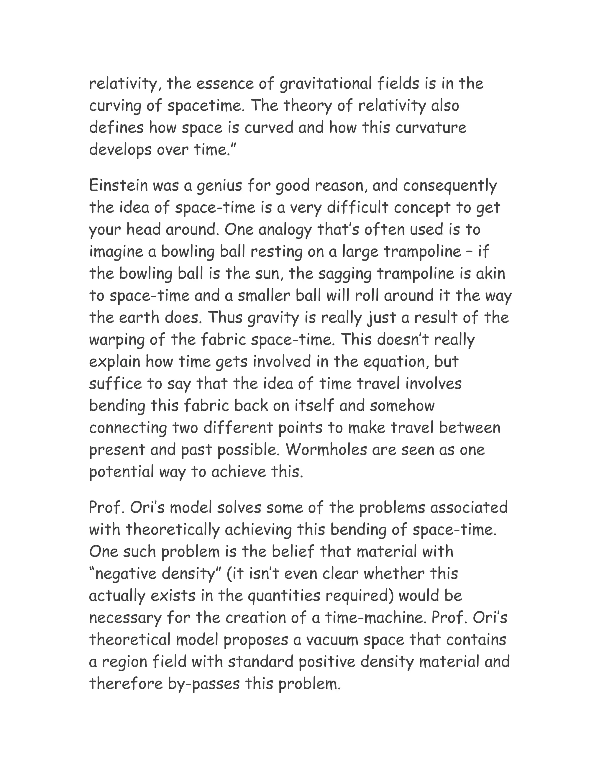2) The model proposed by Professor Amos Ori involves a region of standard positive density material within a vacuum space, avoiding the need for hypothetical negative density material.