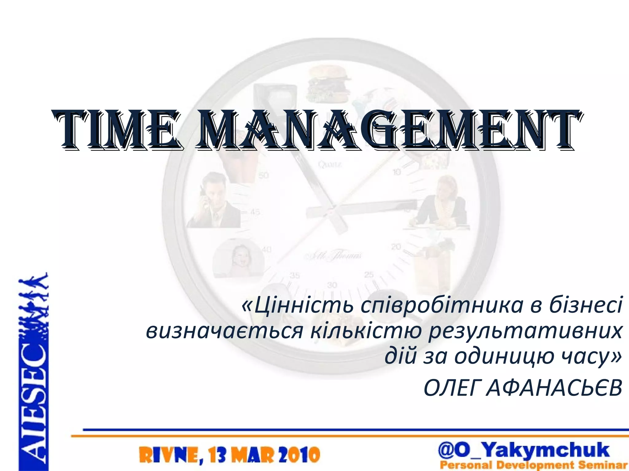 Time management «Цінністьспівробітника в бізнесі визначається кількістю результативних дій за одиницю часу» ОЛЕГ АФАНАСЬ Є В