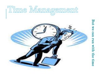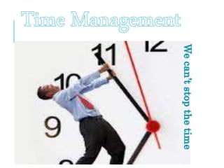 This document provides information about time management from Mohammad Mizanur Rahman, a fabrics finishing expert and manager in Mekelle, Ethiopia. It defines time management, explains why it is necessary, and lists some common time wasters. It also provides tips for using time effectively such as consolidating tasks, tackling tough jobs first, and taking time to plan. The document stresses that one does not manage time directly but manages oneself, others, and work to be more productive.