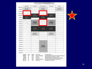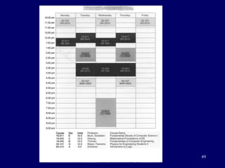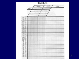 Randy Pausch gives tips on effective time management and productivity. He recommends clarifying goals, prioritizing tasks, using to-do lists, minimizing distractions, learning to delegate, and overcoming procrastination. Specific tips include keeping a clean desk, using technology efficiently, limiting interruptions, and scheduling time for important tasks instead of just fitting everything in. The talk provides numerous strategies and examples to help manage time better.