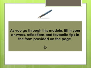 This document provides time management tips for students. It suggests starting with self-reflection to identify time-wasting habits. Some tips include turning off electronics during study time, taking breaks between study sessions, writing to-do lists, finding quiet study spaces, and scheduling work in smaller chunks spread over time to avoid procrastination and all-nighters. Developing a balanced schedule with time for work, relaxation, and social activities is emphasized. Students are encouraged to create an action plan and meet with an academic coach to implement effective time management strategies.