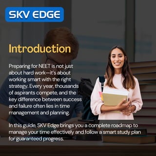 "Time Management & Smart Study Plan for NEET" is a comprehensive guide designed to help aspirants organize their preparation effectively. Learn proven time management techniques, subject-wise strategies, and smart study plans to boost productivity and maximize your NEET exam success.