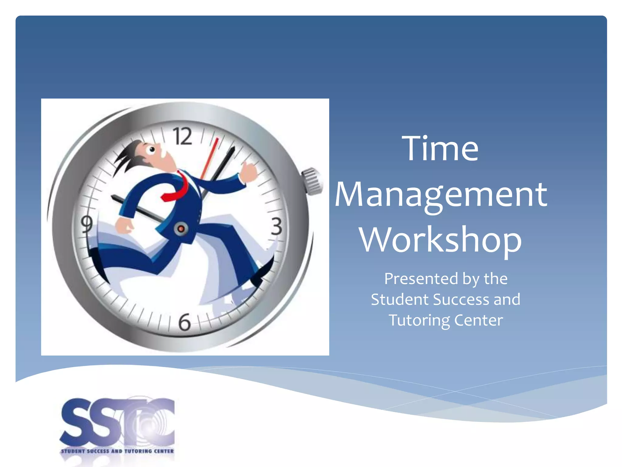 The document describes a time management workshop presented by a student success and tutoring center. It includes surveys to assess participants' time management habits. The workshop covers creating goals and prioritizing tasks, avoiding procrastination, managing interruptions, scheduling activities, and dealing with stress. Attendees are encouraged to set personal goals, use tools like activity logs and urgent/important matrices to prioritize tasks, and establish regular study times to reform procrastination habits. Effective time management and stress reduction techniques like taking breaks are presented to help students become better organized and less anxious.