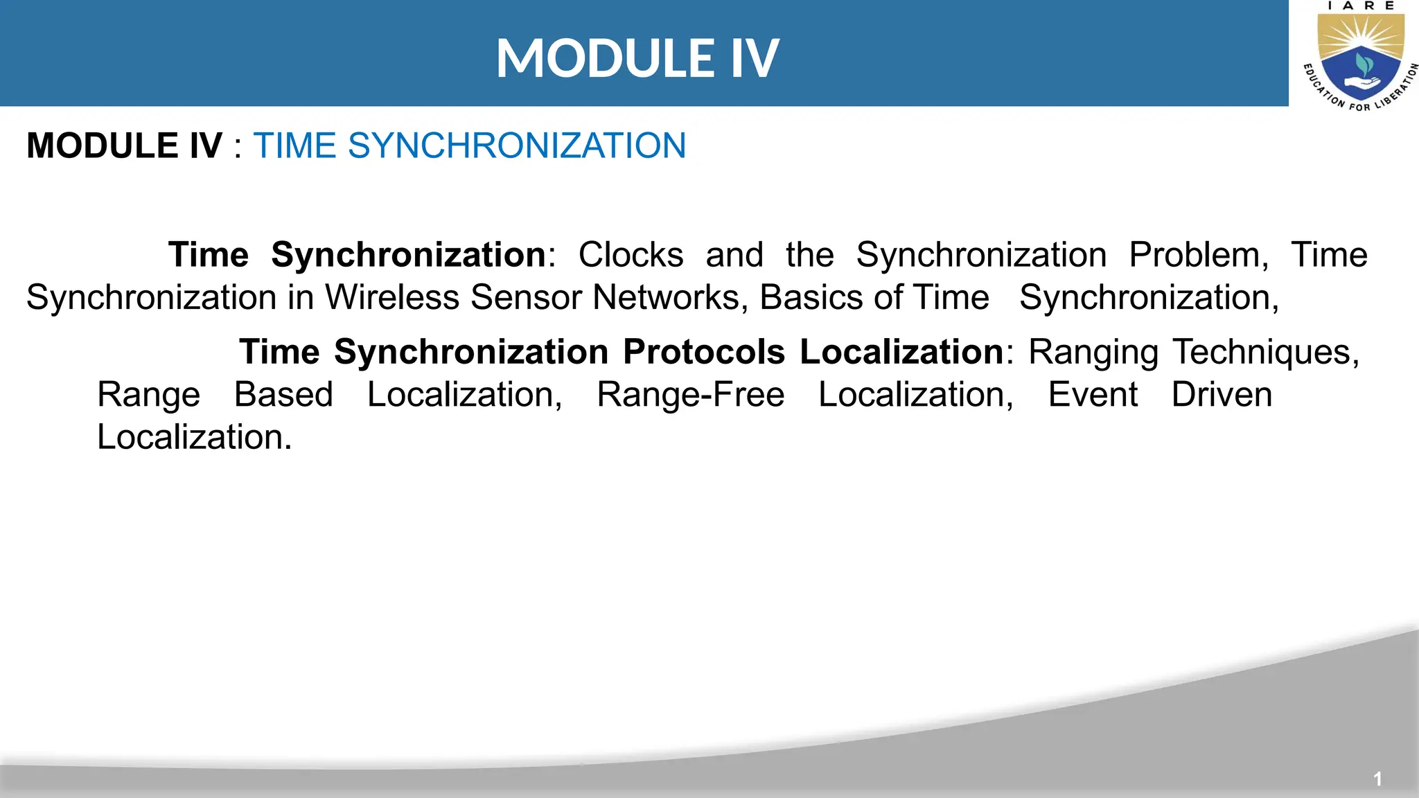 Time Synchronization Protocols Localization: Ranging Techniques,