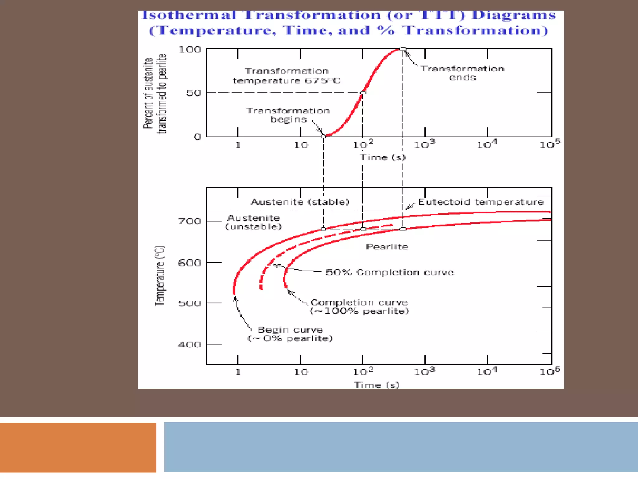 1) Isothermal TTT curves show the change in phase that occurs at constant temperature and can indicate the start and finish of transformations.