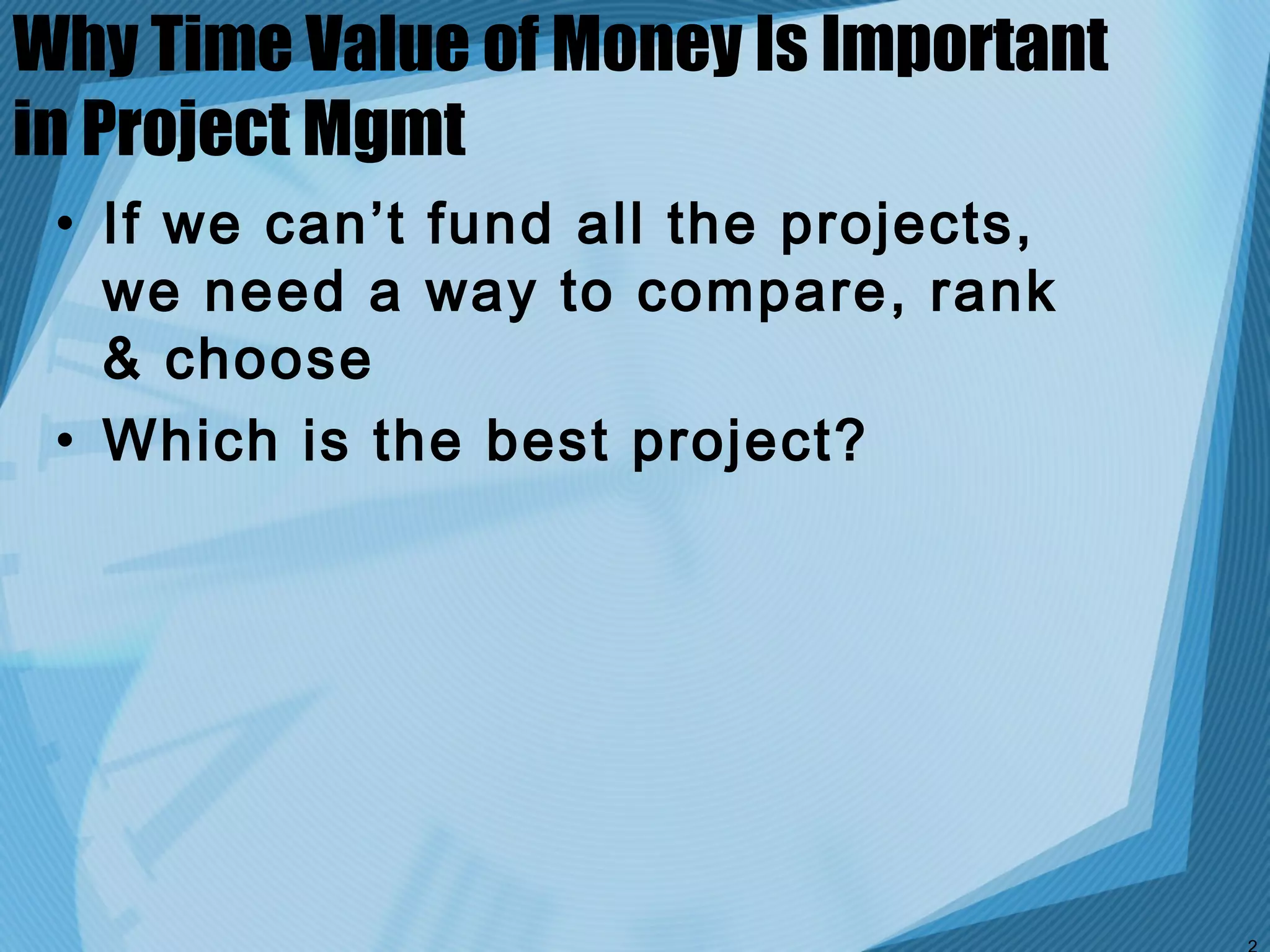 The document discusses the importance of time value of money concepts in project management and finance. It provides an overview of key time value of money concepts such as net present value (NPV), internal rate of return (IRR), discount rates, and cash flow analysis. Several methods for evaluating and comparing projects are presented, including using a weighted scoring model, balanced scorecard, and financial analyses like NPV. Excel functions for time value of money calculations are also reviewed.