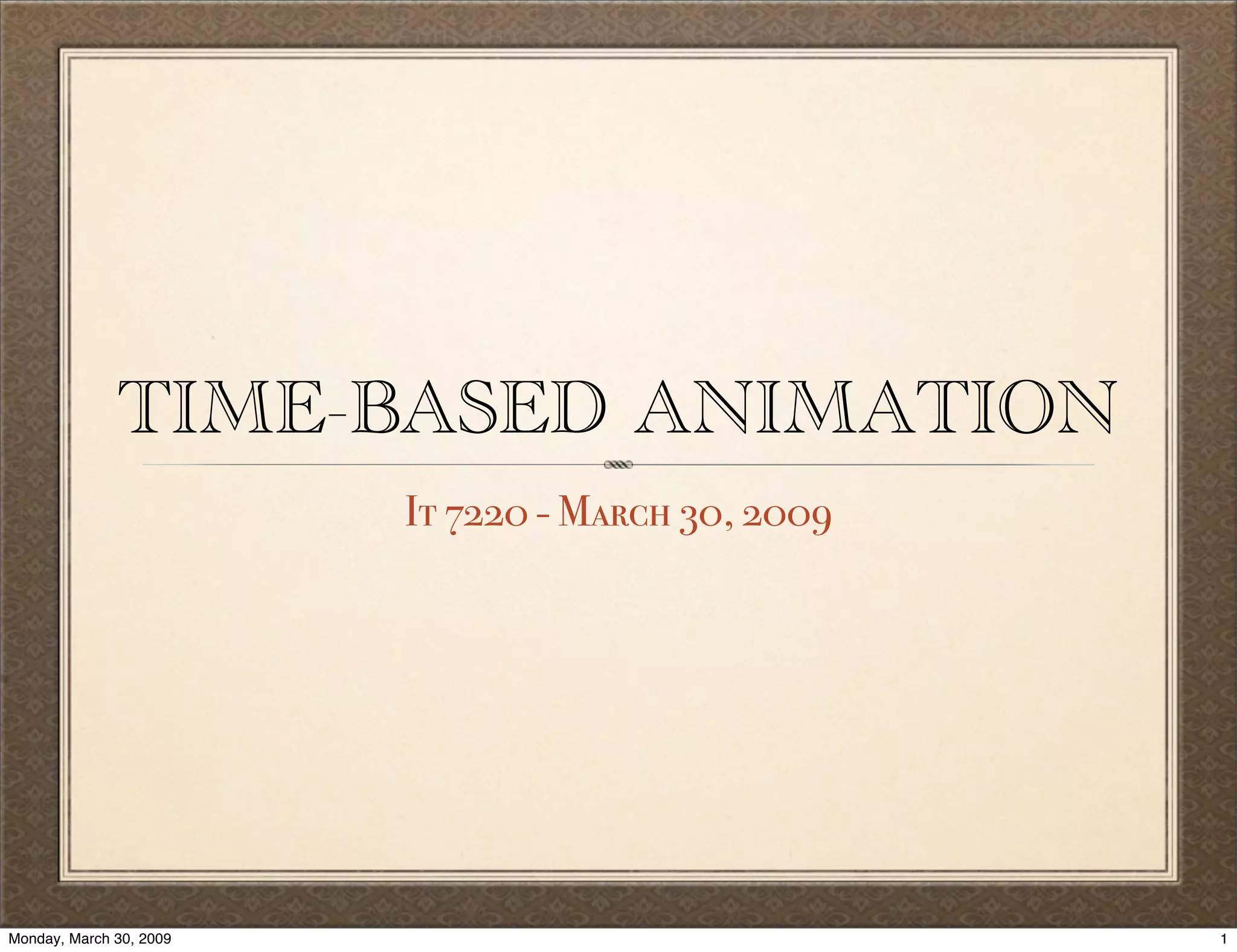 The document outlines the syllabus and timeline for a time-based animation course, detailing upcoming lectures, labs, and project presentations. It includes comments on midterm performance, with scores and grading distribution, as well as analysis of game projects such as 'Air Raid' and 'Paddle Ball.' The document stresses the importance of game design, collision detection, and upcoming topics for the following weeks.