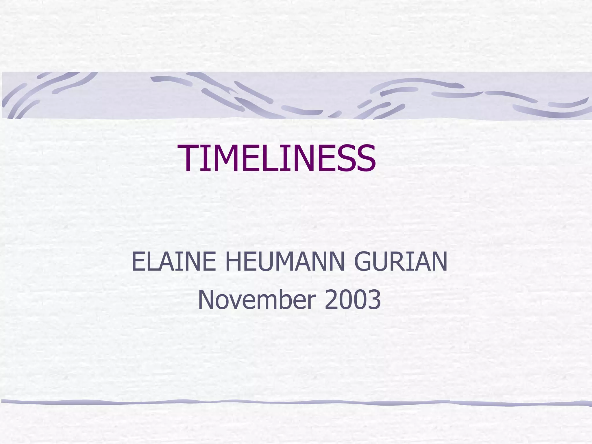 This document discusses the concept of timeliness in museums, emphasizing its relevance and application in areas such as service delivery and community engagement. It presents various dimensions of timeliness, including responsiveness to current events, performance measures, and the integration of contemporary topics into museum practices. The author highlights the importance of establishing systems and relationships that enable museums to adapt and respond effectively to the changing needs of society.