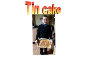 This document provides instructions for making a basic cake that requires oil, sugar, milk, 3 eggs, lemon, flour, an oven tray, oven paper, a spoon, blender, and bowl. The instructions specify beating the eggs in a bowl, grating lemon peel, adding flour and oil to the bowl, pouring in milk, blending all ingredients with an added soda powder using a blender, spreading the dough on an oven tray lined with paper, sprinkling sugar on top, and baking until done.