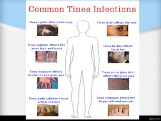 Tinea capitis, a fungal infection of the scalp, commonly affects toddlers and is characterized by circular hair loss and flaky skin; it may present in various forms with differing symptoms. Diagnosis involves examining the scalp, often utilizing Wood's light and direct microscopy, while treatment typically includes antifungal shampoos. The prognosis is generally positive, with most patients experiencing complete recovery and hair regrowth, though severe cases may lead to scarring alopecia.